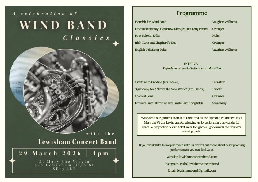 Join the Lewisham Concert Band for an afternoon of classic wind band repertoire.